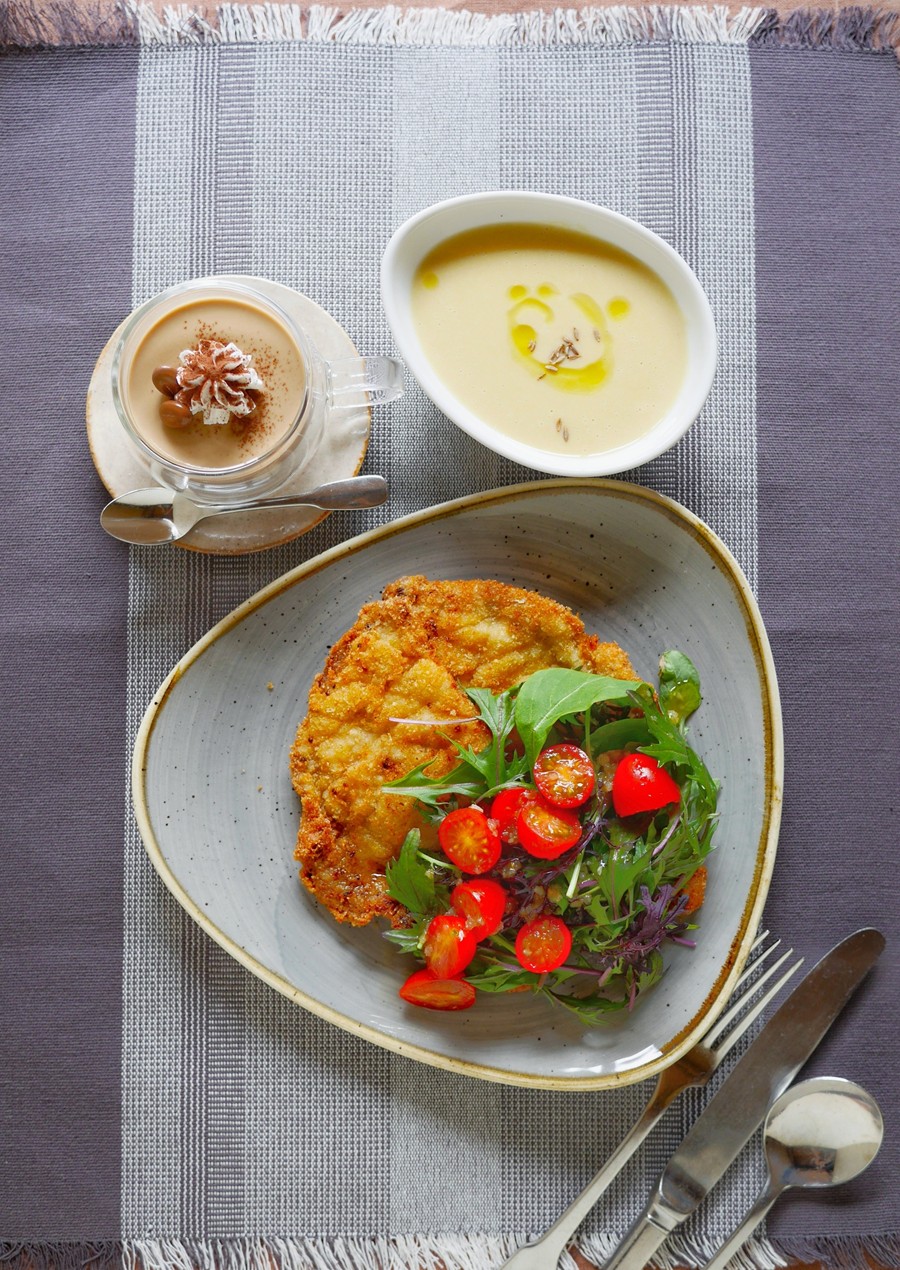 サクサクに揚げ焼きしたカツレツと、お豆の優しい甘みが心に染みわたるスープをご紹介します。